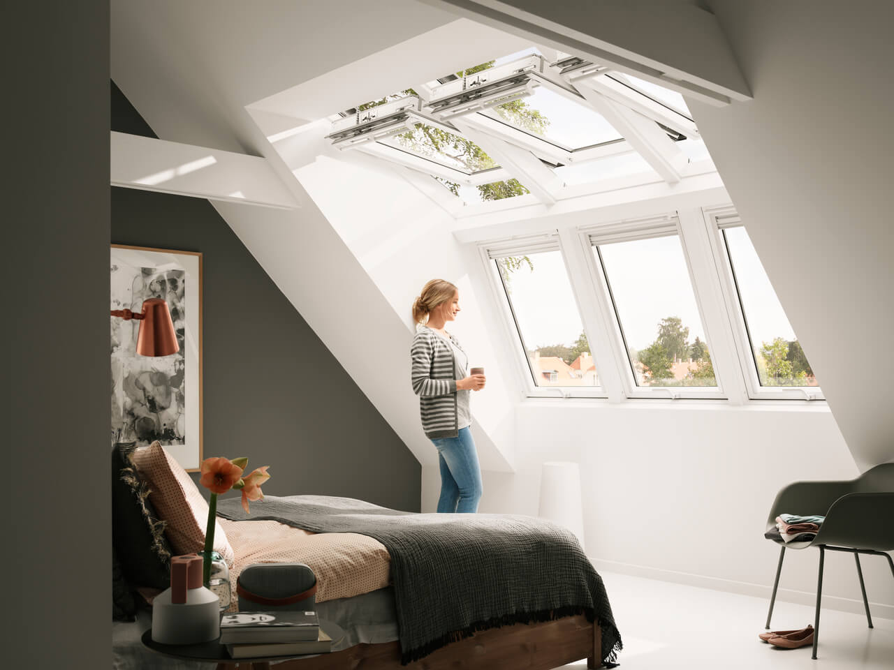 Nodig daglicht en frisse lucht uit in jouw slaapkamer en verbeter je slaapcyclus en algehele gezondheid. Het opkomen en ondergaan van de zon bepaalt de natuurlijke slaap-waakcyclus, ook wel ons dag- en nachtritme genoemd, dat onze slaappatronen, eetlust en hersenactiviteit beïnvloedt. Je kunt jouw dag- en nachtritme verbeteren door daglicht in je slaapkamer te brengen met VELUX dakramen en lichtkoepels.